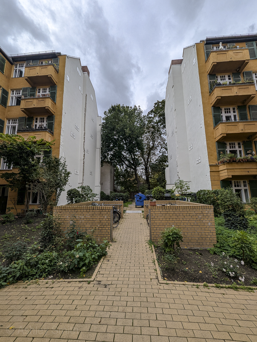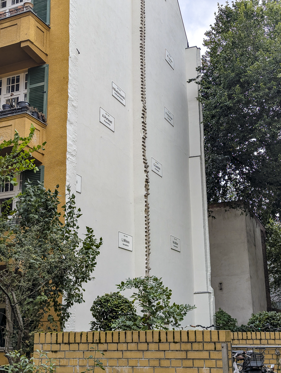 At Große Hamburger Straße 15-16, the memorial you’re looking for is actually what’s not here. In between these two buildings is an empty space where a building used to be until it was destroyed during the war.