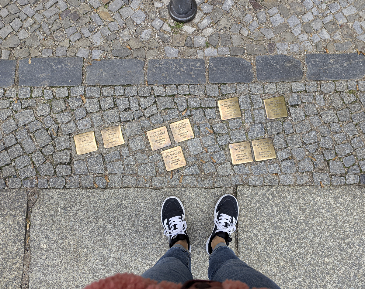 As in nearly all major cities in Europe, Berlin has its own collection of Stumbling Stones. Stolpersteine (as they’re known in German) are small brass cobblestones that act as individual memorials to Holocaust victims.